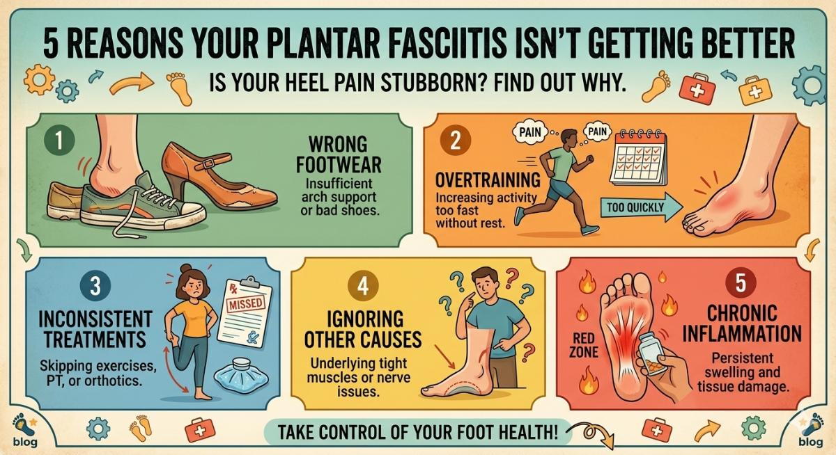 If your plantar fasciitis isn’t getting better, there may be underlying reasons preventing your foot from healing properly. Understanding these causes can help you take the right steps toward lasting relief.